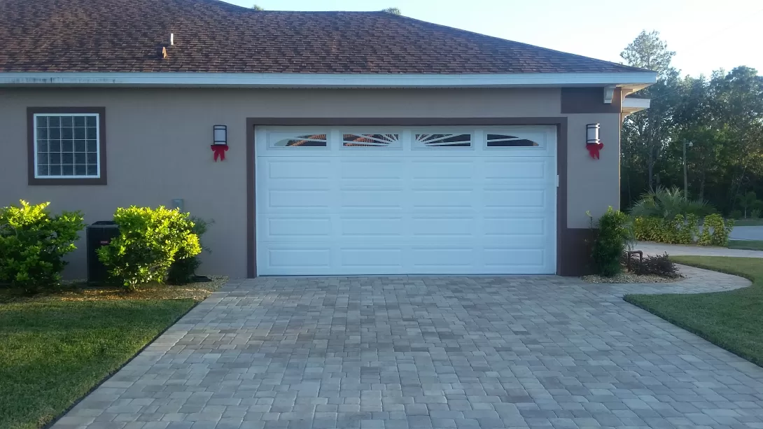 Project Location Palm Coast, FL Project Type Raised Panel Door Style Raised Long Panel Garage Door with 4 Piece Sunburst Glass Request Estimate